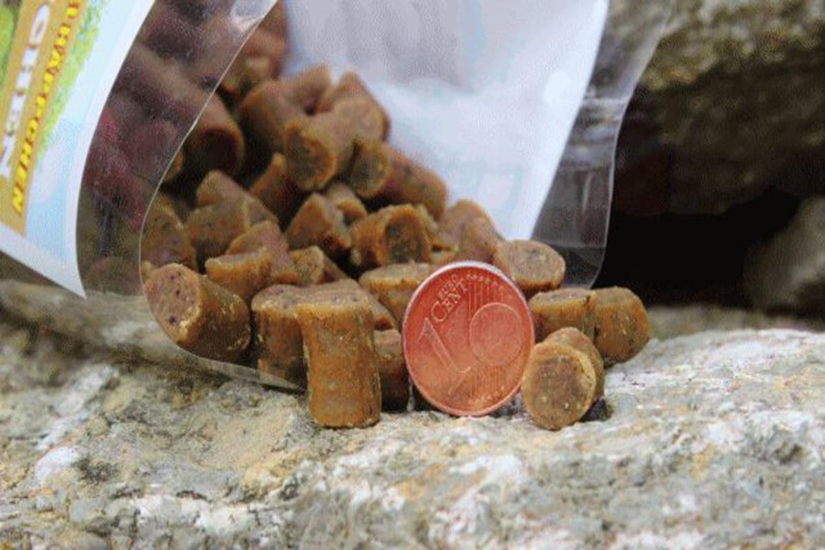 Fleischknochies mit Büffel Mit extra viel Fleisch und ohne Gluten sind diese besonders weichen Leckerchen in Knöchelchenform, super gut zum Trainieren geeignet. Es ist nicht unwichtig, dass die Trainingsleckerchen schön weich sind, so besteht weniger die Möglichkeit, dass Ihr Liebling sich während des Trainings am Leckerchen verschluckt. Natürlich hat PANYS auch hier auf künstliche Aroma- und Farbstoffe verzichtet. Da PANYS als Lockstoff Fleisch verwendet, in diesem Fall 90,0%, sind die Fleischknochies ideale Trainingsleckerchen. Die Fleischknochies sind Glutenfrei und somit können Sie auch ihre Lieblinge, die auf Gluten reagieren, mit den Fleischknochies trainieren. Die einzige Frage die sich hier stellt: „Welche Geschmacksrichtung mag mein Liebling am liebsten?“ Bei neun verschiedenen Geschmacksrichtungen fällt die Wahl oft schwer. Dafür haben wir die Fleischknochies in 200 g Beutel verpackt. So hat Ihr Liebling die Möglichkeit alle Sorten einmal auszuprobieren. Wenn Sie wissen, welche Sorten bevorzugt werden, empfehlen wir die 500 g im wieder verschließbaren Eimer.