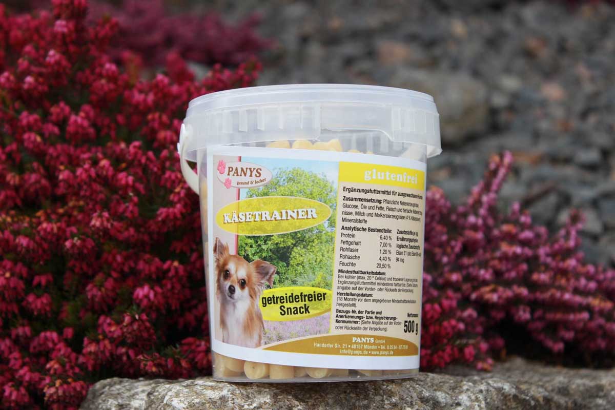 Ein Highlight unter den Leckerchen sind die Käsetrainer von PANYS mit der getreide- und glutenfreien Rezeptur. Sie sind klein, weich und fetten nicht. PANYS Käsetrainer sind für alle Hunde, egal welcher Altersklasse und welcher Größe optimal geeignet.  Natürlich sind alle PANYS Käsetrainer ohne künstliche Aroma- und Farbstoffe. Wir wünschen Ihrem Liebling guten Appetit und viel Spaß beim Training. Ein zufriedenes, glückliches Tier ist doch das, was uns allen am Herzen liegt. Wir haben die Käsetrainer in 150 g Beutel verpackt. So hat Ihr Liebling die Möglichkeit erst einmal zu probieren. Wenn Sie und Ihr Liebling von den Käsetrainern begeistert sind, empfehlen wir die 500 g im wieder verschließbaren Eimer.