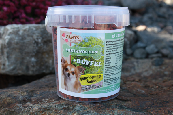 Für alle Altersklassen geeignet ! Wir halten für Ihre Lieblinge Leckerchen in bester PANYS Qualität bereit. Selbstverständlich haben wir auf Lockstoffe wie Zucker oder Nikotin verzichtet. "Ausgewogen und lecker" ist unser Motto ! Auch beim Training sollte Ihr Liebling nicht auf leckere Belohnungsleckerchen verzichten müssen. Ein Highlight unter den Leckerchen sind unsere getreidefreien Miniknochen. Sie sind klein, weich und fetten nicht. PANYS Miniknochen sind für alle Hunde, egal welcher Altersklasse und welcher Größe optimal geeignet. Alle Miniknochen werden auf Fleisch- & Kartoffelbasis hergestellt und sind daher getreide- und glutenfreie Rezepturen. Natürlich sind alle PANYS Miniknochen auch ohne künstliche Aroma- und Farbstoffe. Wir wünschen Ihrem Liebling guten Appetit und viel Spaß bei Training. Für Abwechslung haben wir mit neun verschiedenen Geschmacksrichtungen gesorgt. Ein zufriedenes, glückliches Tier ist doch das, was uns allen am Herzen liegt. Die einzige Frage die sich hier stellt: „Welche Geschmacksrichtung mag mein Liebling am liebsten?“ Bei neun verschiedenen Geschmacksrichtungen fällt die Wahl oft schwer. Dafür haben wir die Miniknochen in 150 g Beutel verpackt. So hat Ihr Liebling die Möglichkeit alle Sorten einmal auszuprobieren. Wenn Sie wissen, welche Sorten bevorzugt werden, empfehlen wir die 500 g im wieder verschließbaren Eimer.