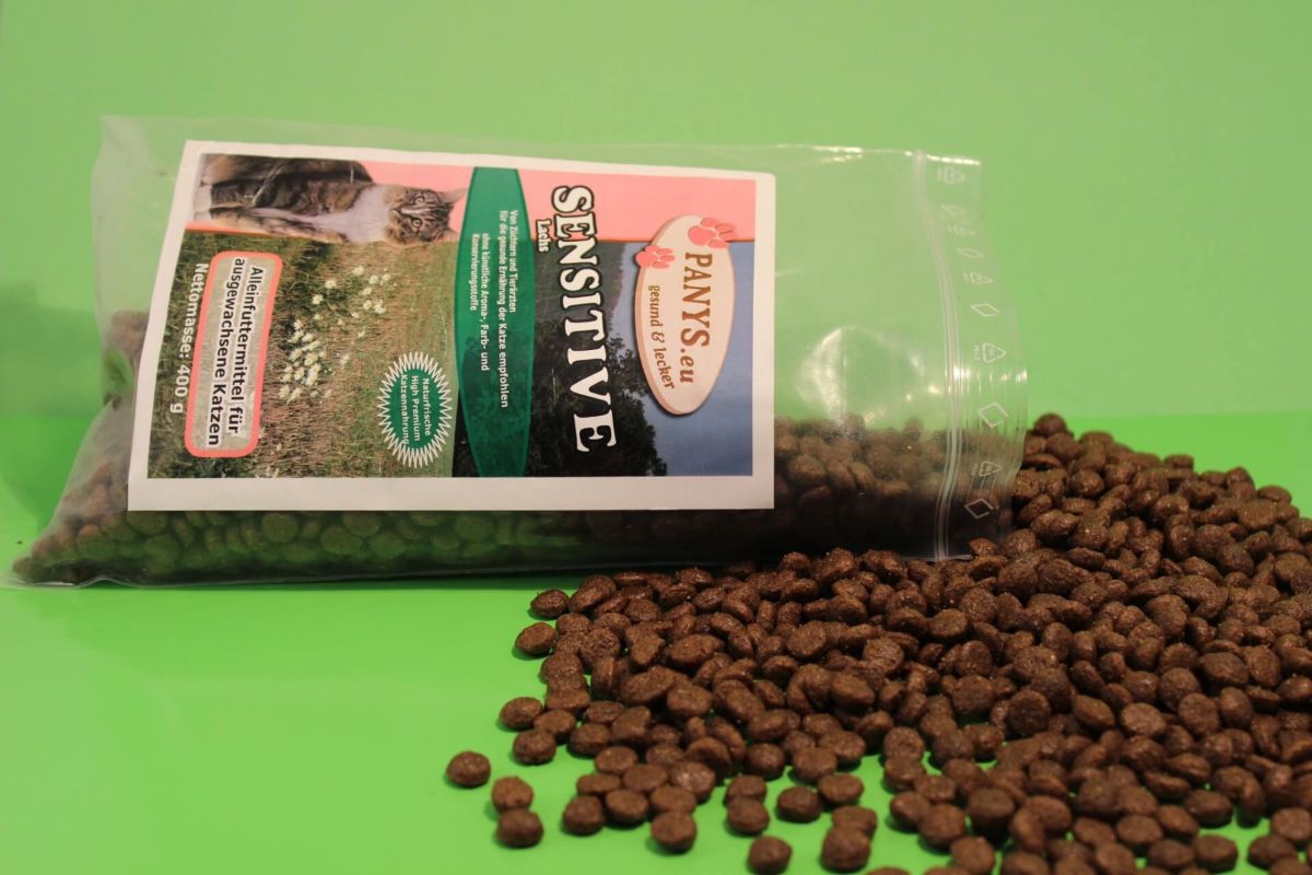 Fleischanteil: nur Lachs und Geflügel. Alleinnahrung für alle weniger aktiven, sowie empfindlichen Katzen mit Neigungen zu Futtermittelunverträglichkeiten. Auch für  ältere Katzen super geeignet. Ohne zugesetzte künstliche Aroma- und Farbstoffe - mit dem Extra an Haut- und Haarschutz-Kroketten. Geringe Haarballenbildung und optimale Ausscheidung bereits entstandener Haarballen mit Hilfe von Pflanzenfasern. Von Züchtern und Tierärzten für die optimale Ernährung Ihrer Katze empfohlen. PANYS Trockennahrung ist ernährungsphysiologisch ausgewogen und enthält alle wichtigen Inhaltsstoffe, die Katzen für ein aktives und zufriedenes Leben benötigen.  Vorteile des PANYS Trockenfutters:   Deutsche Qualität.   Ohne Zusatz künstl. Aroma- & Farbstoffe.   High-Premium-Qualität   Pre-Probiotika - FOS (Fructo-Oligosaccharide)   Auch für ernährungssensible Katzen.   Zu 100 % ohne Gentechnologie.   Zu 100 % ohne Tierversuche.
